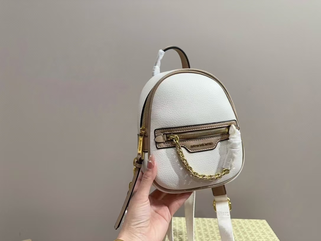 Michael Kors MK 簡潔大方 Elliot雙肩包,以其極簡的設計風格,展現出時尚與實用的完美平衡。白色的皮革材質光滑細緻,散發出高雅的質感,無論搭配休閒或正式服裝,都能輕鬆營造出摩登氛圍。mk 雙肩包的設計注重實用性,內部空間寬敞,能夠輕鬆收納手機、錢包、化妝品等日常必需品,並配有多個隔層,讓物品整理更加方便。精緻的MK標誌裝飾於包面,細節處彰顯品牌格調。這款michael kors 包包是您日常出行的理想選擇,既能提供極致的舒適感,又能提升您的時尚品味。