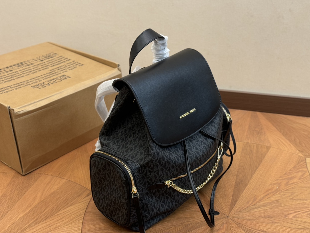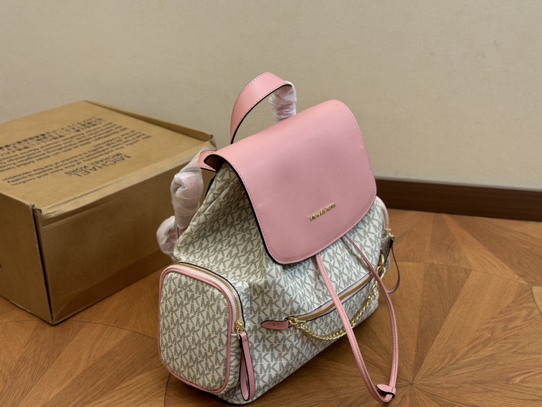 Michael Kors MK 經典百搭雙肩包,設計簡約時尚,展現現代都市風格。MK 包包選用高質感材料,細緻做工,並搭配金色MK標誌,增添奢華感。此款雙肩包有四種顏色可供選擇,無論是經典黑、柔和灰、優雅棕或清新白,都能輕鬆搭配各種服裝風格,適合日常通勤或輕旅行使用。內部空間設計實用,提供充足的收納空間,能夠容納各種必需品,如手機、錢包、化妝品等。這款MK 雙肩包不僅兼具功能性,更是彰顯品味的時尚單品。