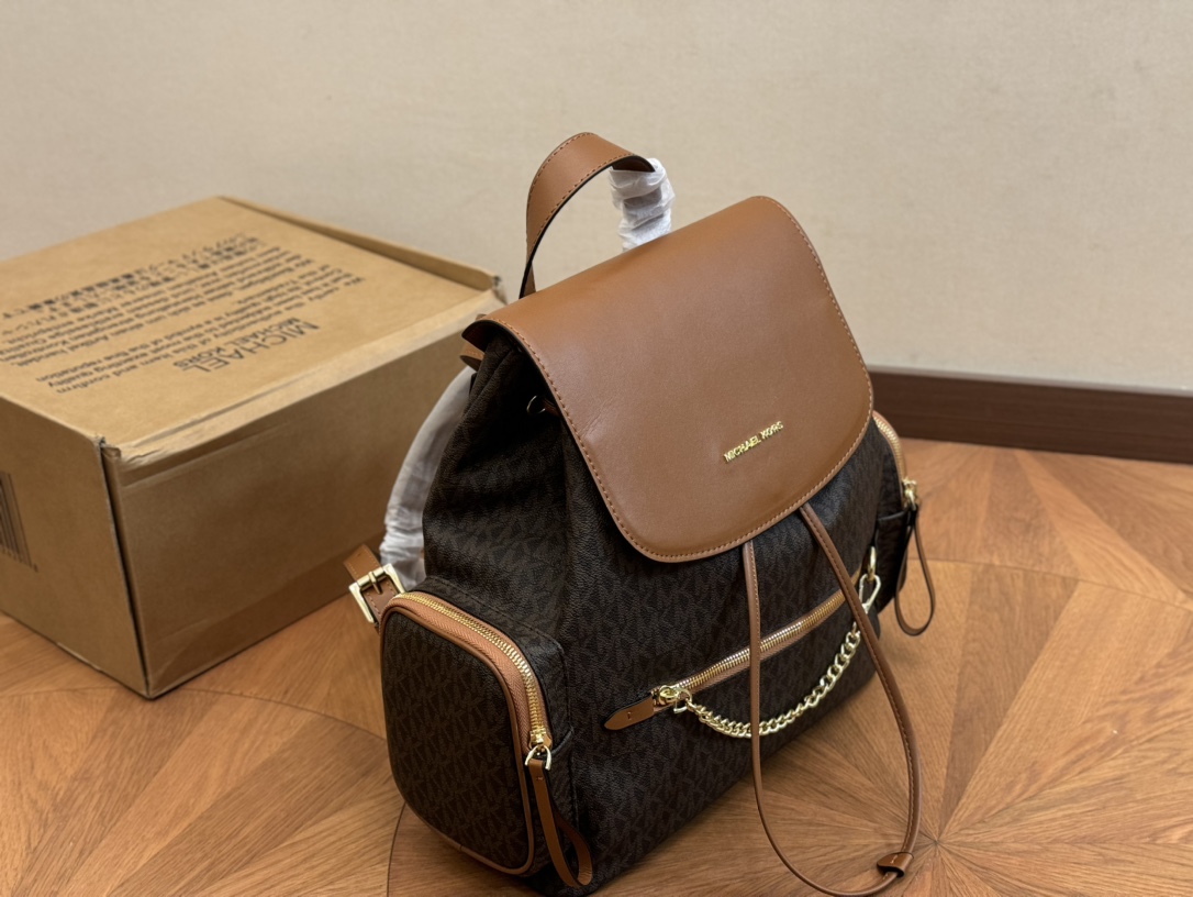 Michael Kors MK經典百搭雙肩包,以簡約時尚的設計,成為都市女性的理想選擇。包身採用優質材料,搭配金色MK標誌,散發出低調奢華的氣息。此款mk 雙肩包提供四種顏色:經典黑、柔和灰、優雅棕和清新白,無論搭配日常服裝還是休閒裝,都能輕鬆駕馭。包包內部空間寬敞,設有多個分隔,方便收納手機、錢包、化妝品等日常必需品。無論是上班通勤或周末出遊,都能完美匹配您的需求,兼具實用性與時尚感,是每位女性的必備單品。