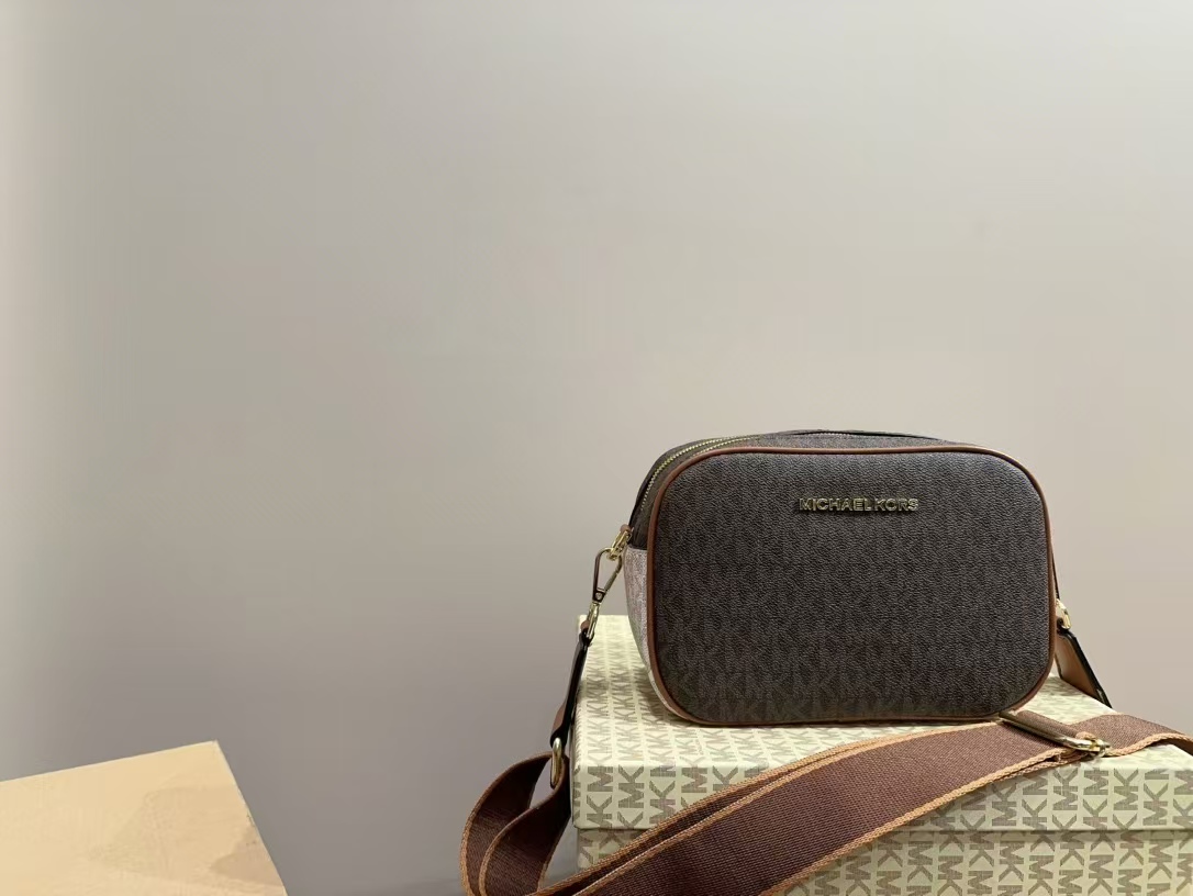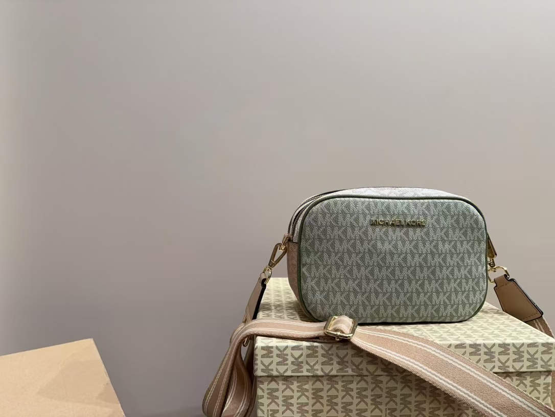 Michael Kors MK 低調有質感雙層相機包,擁有四種經典色彩選擇:黑色、白色、棕色與粉色,無論是日常搭配或特殊場合,皆能完美融入您的穿搭。此款相機包採用高品質皮革材質,並以簡約而精緻的設計展現低調奢華。雙層結構提供更多收納空間,內部設有多個實用口袋,讓您可以輕鬆收納手機、長夾、化妝品等小物品。搭配可調式肩帶,無論斜背或手提,都能輕鬆駕馭,帶來極致的舒適感與實用性。無論是都市生活還是休閒出行,這款mk 相機包都能讓您展現品味與風格。
