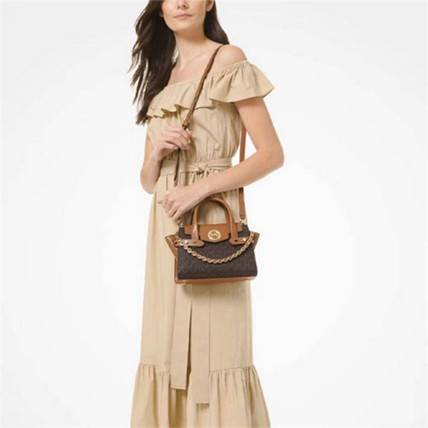 此款 Michael Kors 採用來自義大利的頂級 Saffiano 皮革,充滿柔潤的手感及細緻的光澤外,精緻的編織鍊帶與搶眼的MK 金屬 Logo 躍上包身,多元豐富的細節帶來華麗的視覺。而mk 手提單肩包側身可調整容量的皮帶設計,更提供完整的實用性。不論是如同馬卡龍般的彩虹色系,或是活潑亮眼的撞色色調,在繽紛的季節裡,墜入Carmen系列熱情迷人的故事與樣貌中。