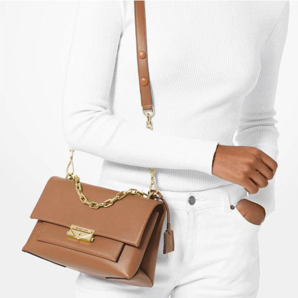 一個包一包兩用,適宜多種場合: Michael Kors Cece翻蓋手袋設計源自可以傳情達意的書信和信封,MK重新定義了優雅時尚日常造型。mk皮革單肩包採用翻蓋設計,閃亮硬體和鎖扣式細節設計,可輕鬆存放您的日常用品。採用綿羊皮製成,擁有細膩柔滑的觸感,斜紋絎縫設計令手袋增加現代感。