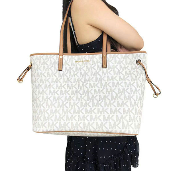 這款 Michael Kors 女士托特包,是MK 經典款之一,採用精緻PVC皮革製成,硬挺有型且表面有細密的紋理,頂端拉鏈封口,mk 托特包包前一塊辨識度很高的Logo銘牌,包內設計拉鏈暗袋和內貼袋。