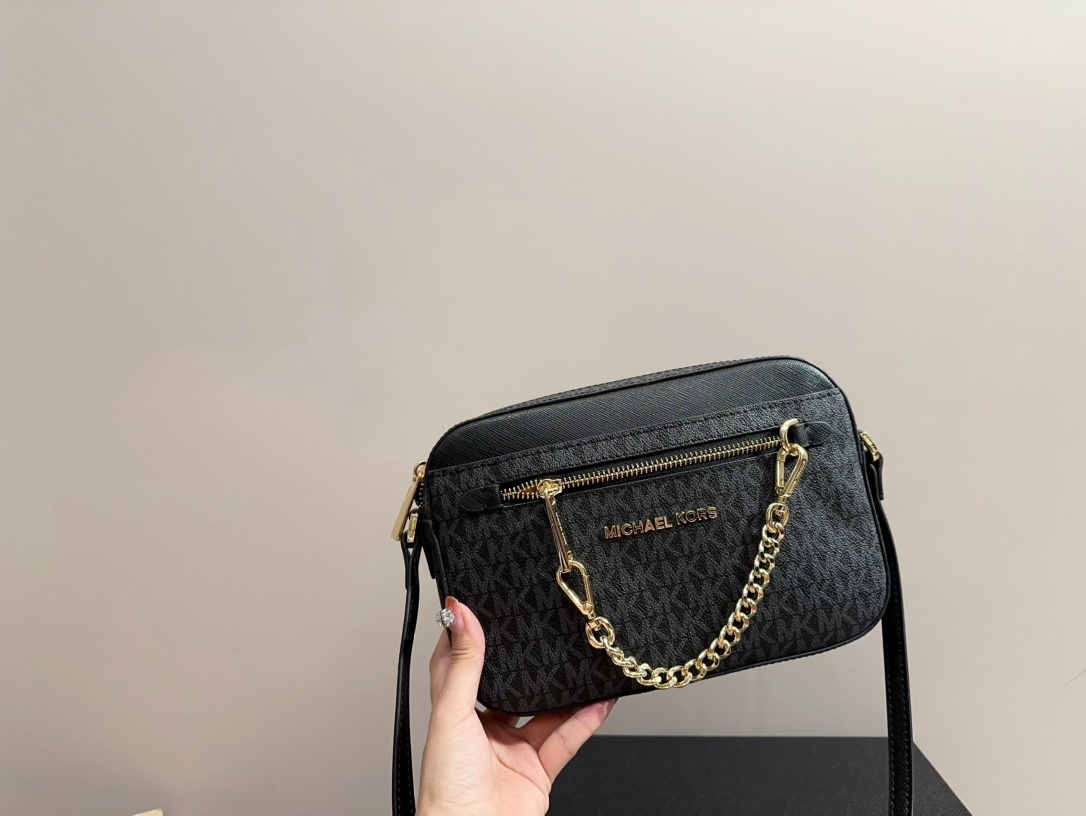 Michael Kors MK Jet Set 系列相機包,融合簡單大方的設計與實用功能,成為現代女性必備的時尚配件。此款mk 相機包提供四種經典顏色,無論是黑色、米色、深藍還是紅色,都能輕鬆搭配各種造型,展現優雅與自信。包身採用高質感皮革,手感柔軟且耐用,細緻的金屬裝飾增添了一份精緻感。內部空間充足,能妥善收納手機、卡片、錢包等小物,是日常出行或旅行的理想選擇。無論是搭配休閒裝還是正式服飾,這款Jet Set系列相機包都能完美呈現您的時尚品味。