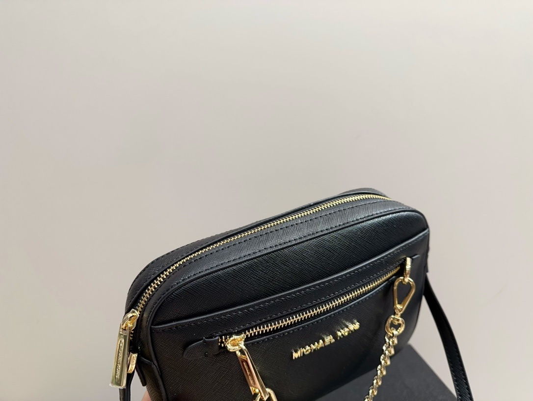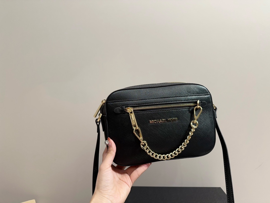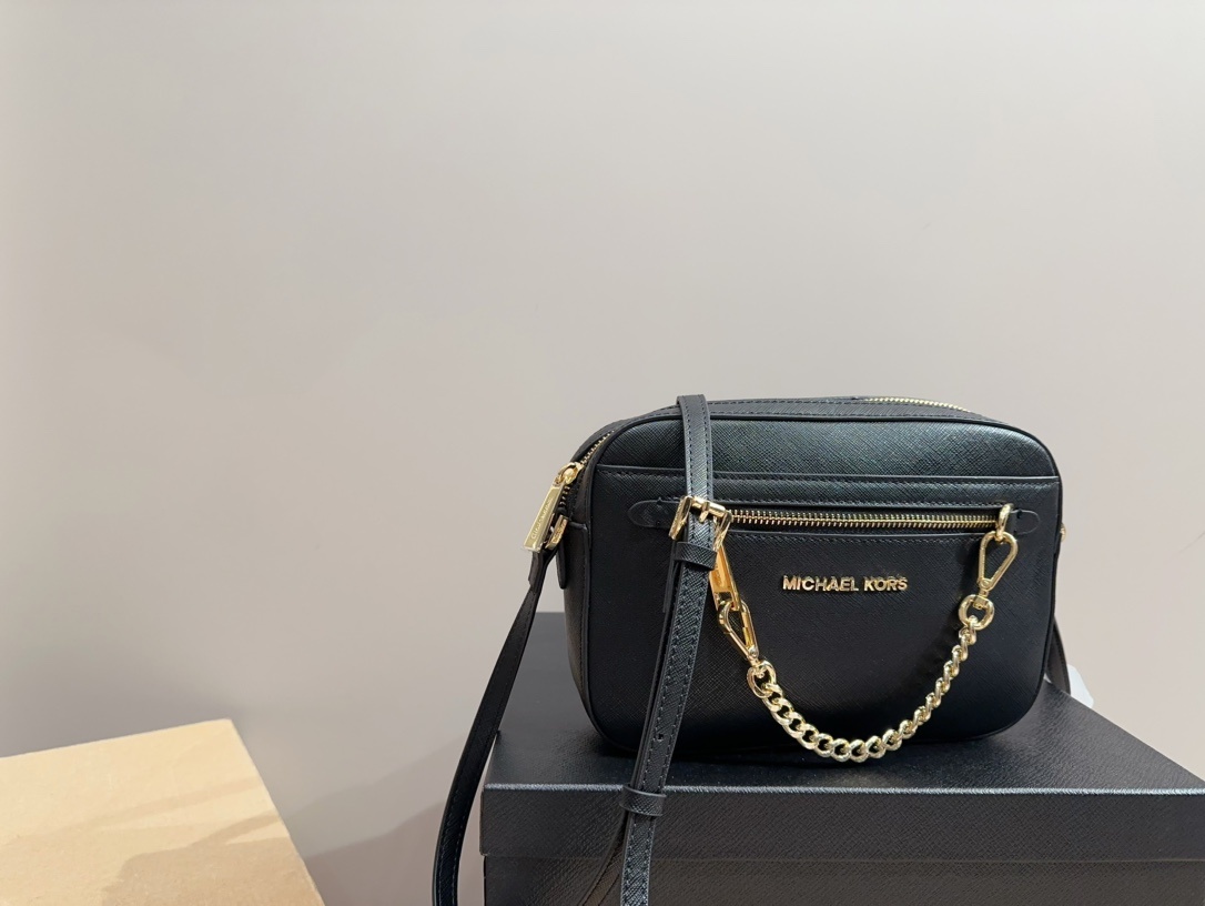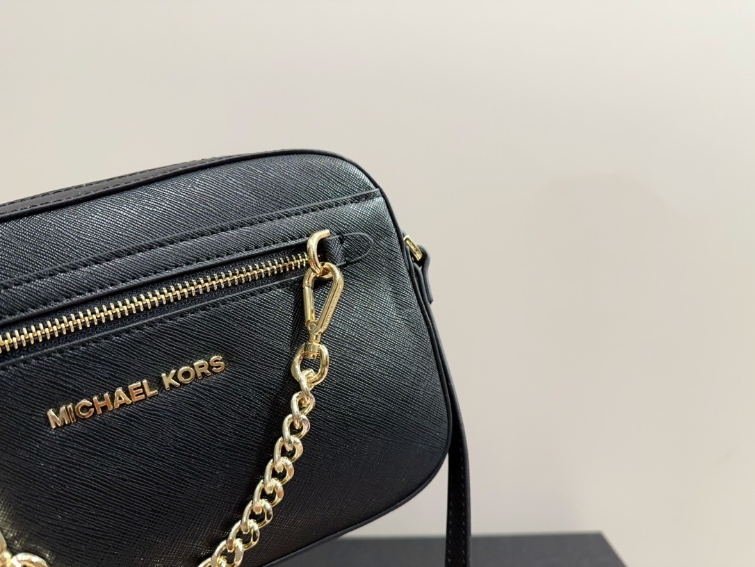 Michael Kors MK Jet Set 系列簡單大方相機包,為現代女性設計,融合了時尚與實用性。這款Michael Kors 相機包以經典黑色為基底,搭配簡約的金屬LOGO,展現低調的奢華感。其外觀簡潔、大方,無論是搭配休閒或正式造型,都能完美融合。mk 包內部空間設計合理,可輕鬆收納手機、錢包、化妝品等小物,是日常出門、旅行或聚會的理想選擇。質感皮革材質保證了包包的耐用性,讓您長時間使用仍保持良好狀態。