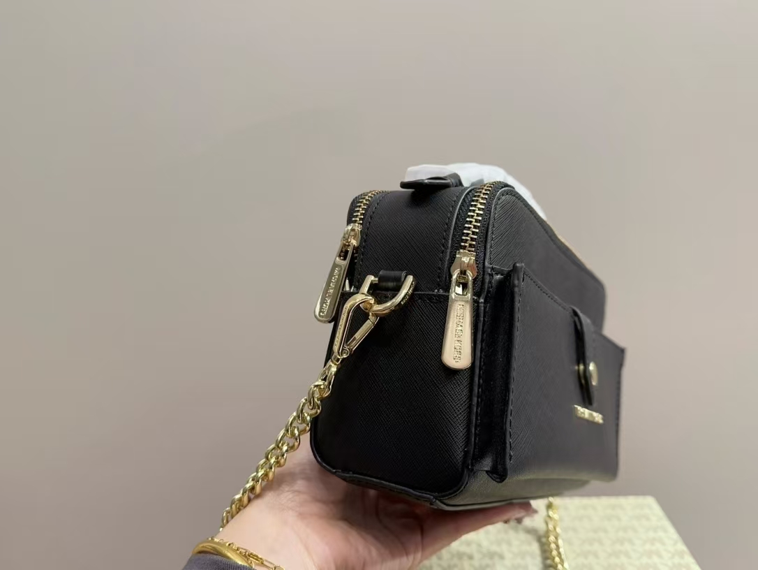 Michael Kors MK高級時髦相機包,採用精緻的黑色皮革材質,外觀典雅而現代,展現出品牌一貫的高端品味。mk 包包設計靈感來自相機包的經典款式,簡約而實用,內部空間充足,適合收納手機、錢包、化妝品等日常必需品。精細的金屬配件與品牌標誌,增添了獨特的時尚感,無論是日常通勤還是外出聚會,都能輕鬆搭配,彰顯個人品味與格調。這款Michael Kors 相機包兼具實用與時尚,無論何時何地都能成為您造型的亮點。