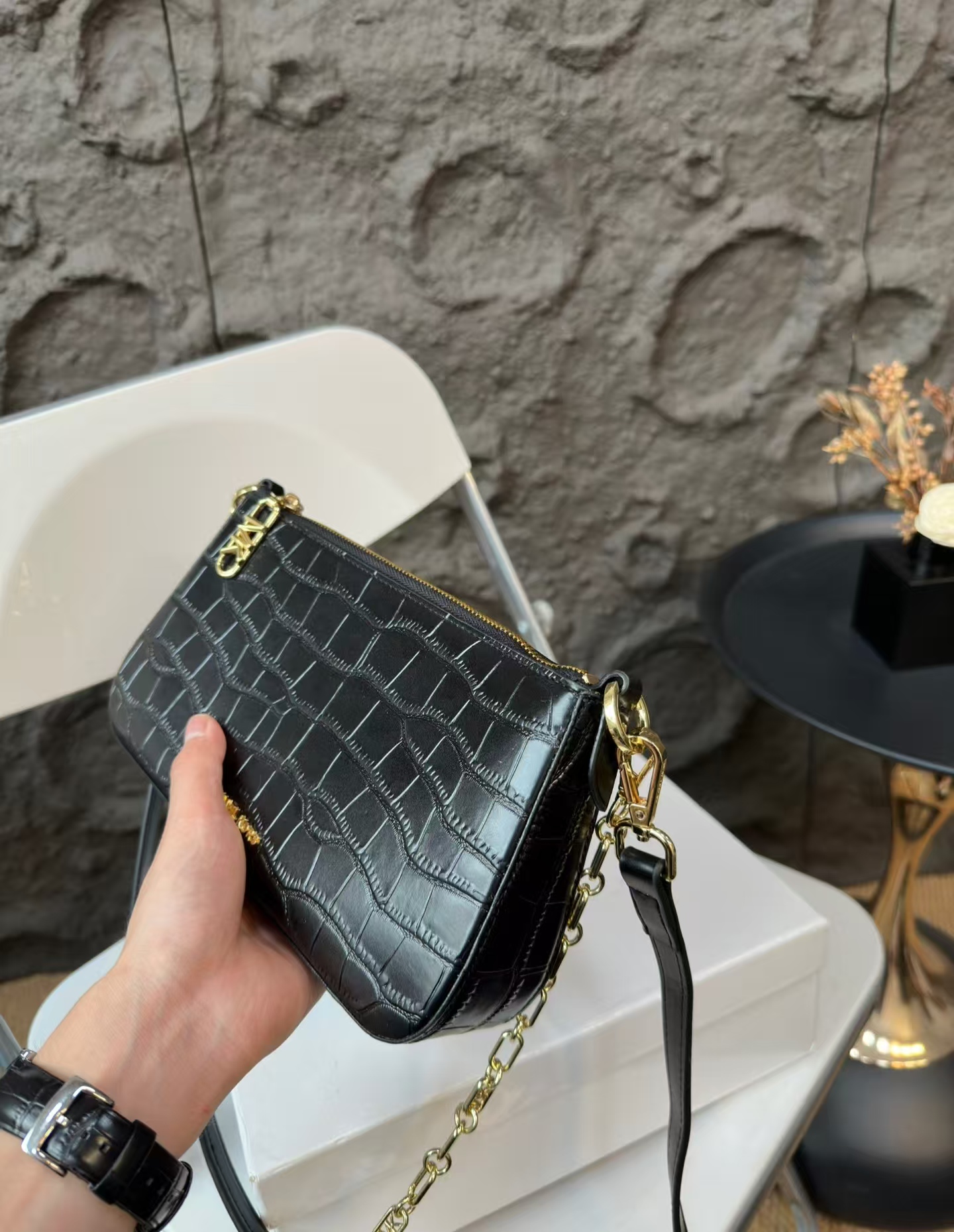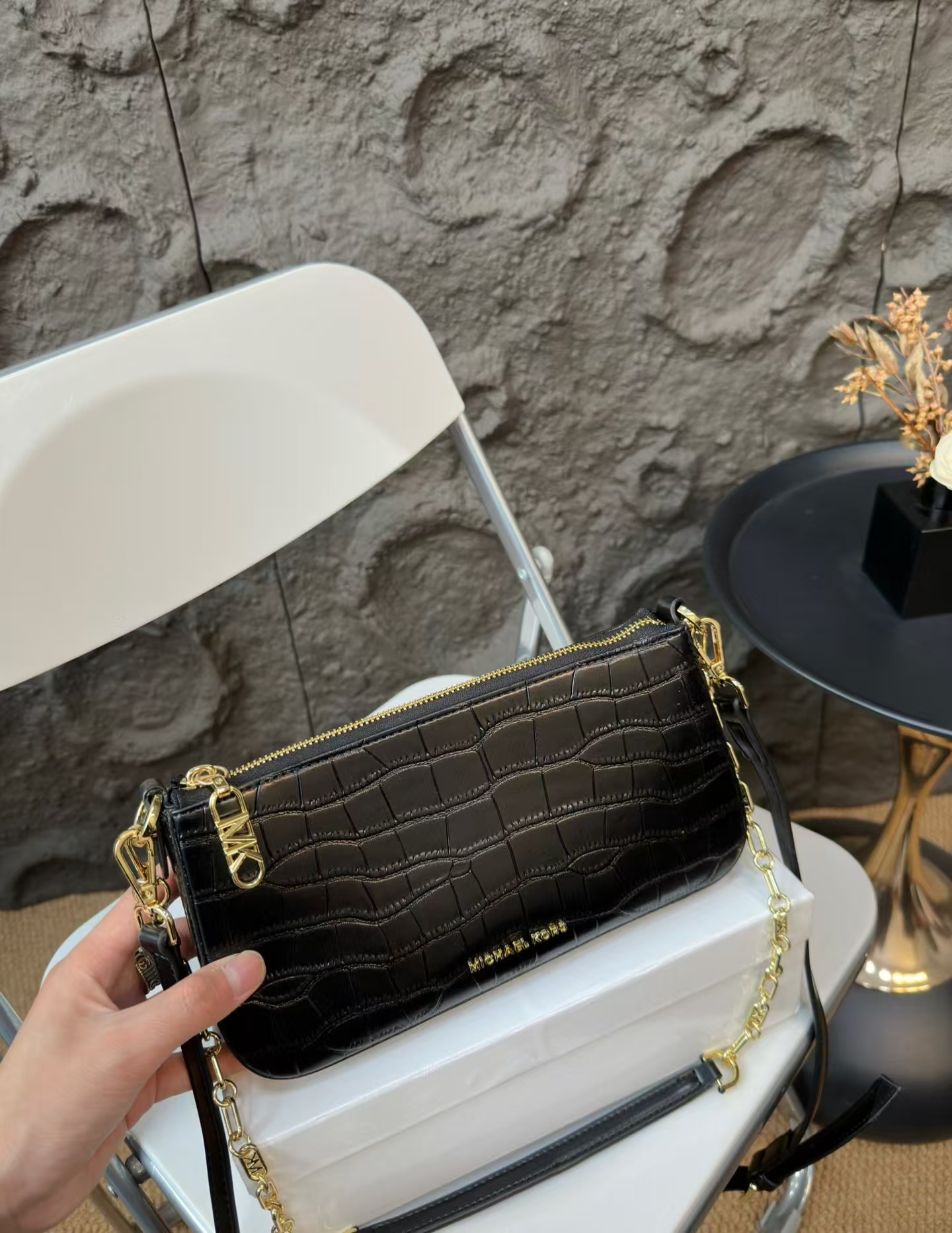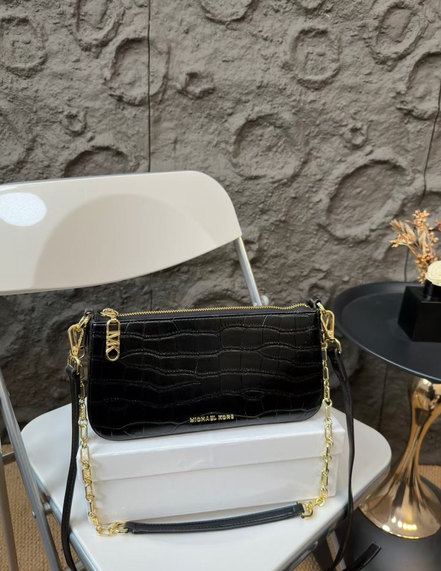 Michael Kors MK 輕便百搭新款相機包,設計簡約卻充滿時尚感,是每位潮流愛好者必備的單品。這款相機包採用高品質的皮革材質,手感細緻,耐用性強。黑色的經典色調使其易於搭配各式服裝,無論是休閒穿搭還是正式造型,都能輕鬆駕馭。mk 包包內部設計合理,能容納手機、相機、錢包等隨身物品,實用性極高。無論是日常使用還是外出旅行,都能為你帶來便利與時尚感,展現品味與個性。這款相機包既適合作為配件,也能作為日常使用的實用包款,是現代女性的完美選擇。