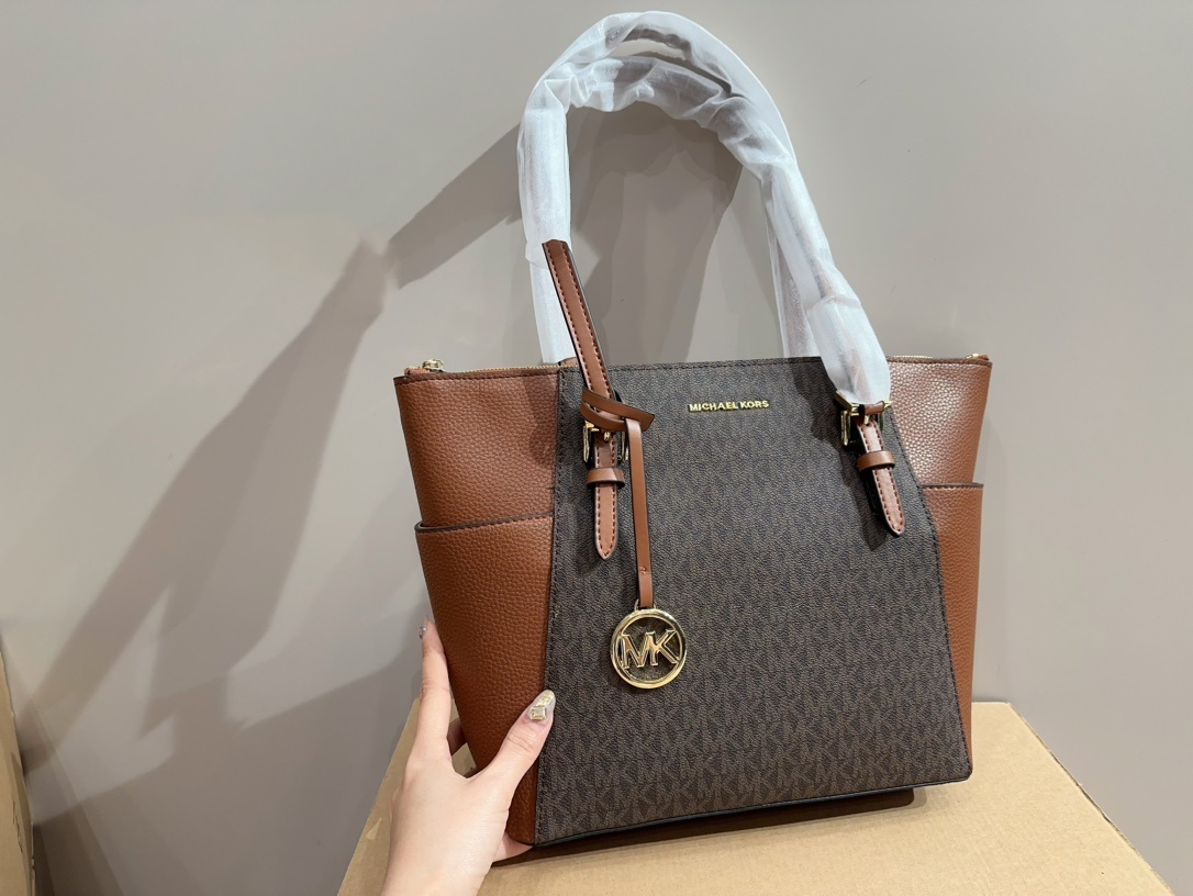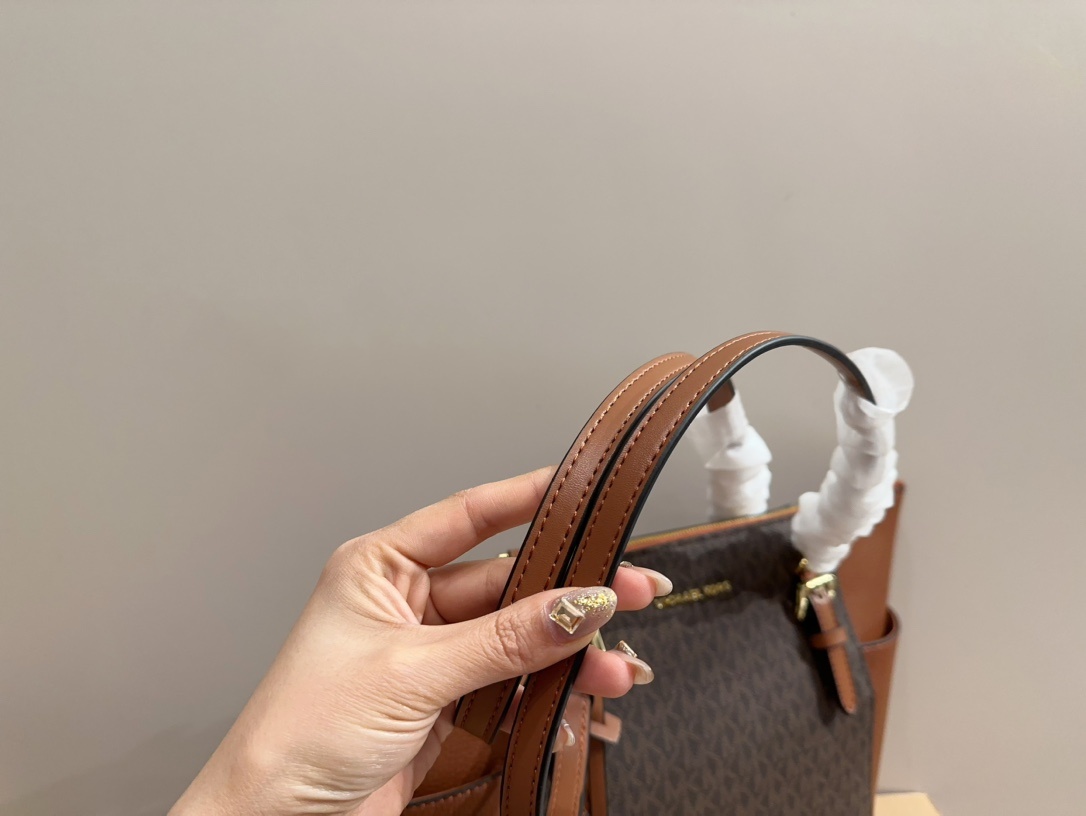 Michael Kors MK 隨性慵懶托特包(小號)以其經典的棕色設計,展現間約與優雅的完美融合。這款手提包選用高品質皮革,手感柔軟且耐用,這合日常使用。小號尺寸讓它既不笨重,又提供足夠的空間容納日常必需品,無論是手機、錢包還是化妝品,都能輕鬆收納。除了其實用性外,包包的間約設計和金屬細節使其無論在日常搭配或正式場合中都能增添壹抹亮點。無論是手提或斜挎,這款michael kors 托特包都能滿足現代女性對時尚與功能並重的需求。