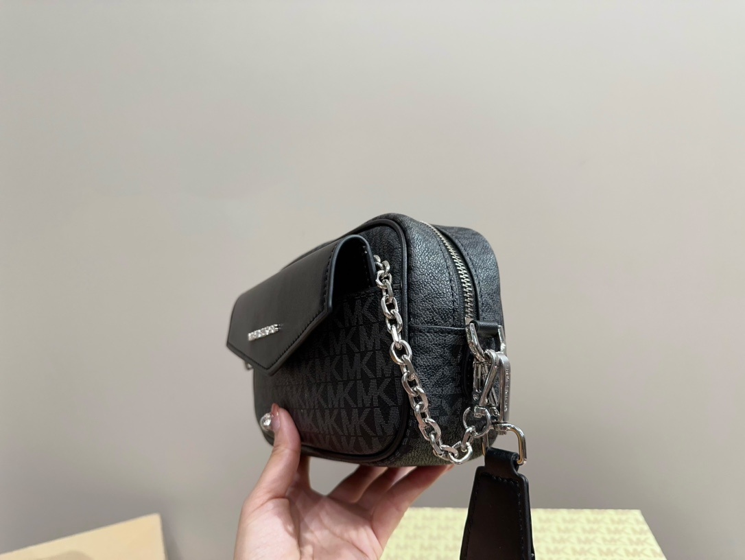 Michael Kors MK 小巧玲瓏相機包,融合時尚與實用的完美設計,無論是搭配日常穿搭還是外出聚會,都能輕鬆駕馭。這款相機包採用高品質皮革製作,經典黑色搭配精緻的金屬品牌標誌,展現低調奢華的品味。mk 包身小巧玲瓏,內部空間設計合理,能收納手機、卡片及小型物品,兼具美觀與實用性。無論是斜背還是手提,都十分方便,是現代女性不可或缺的時尚配件。