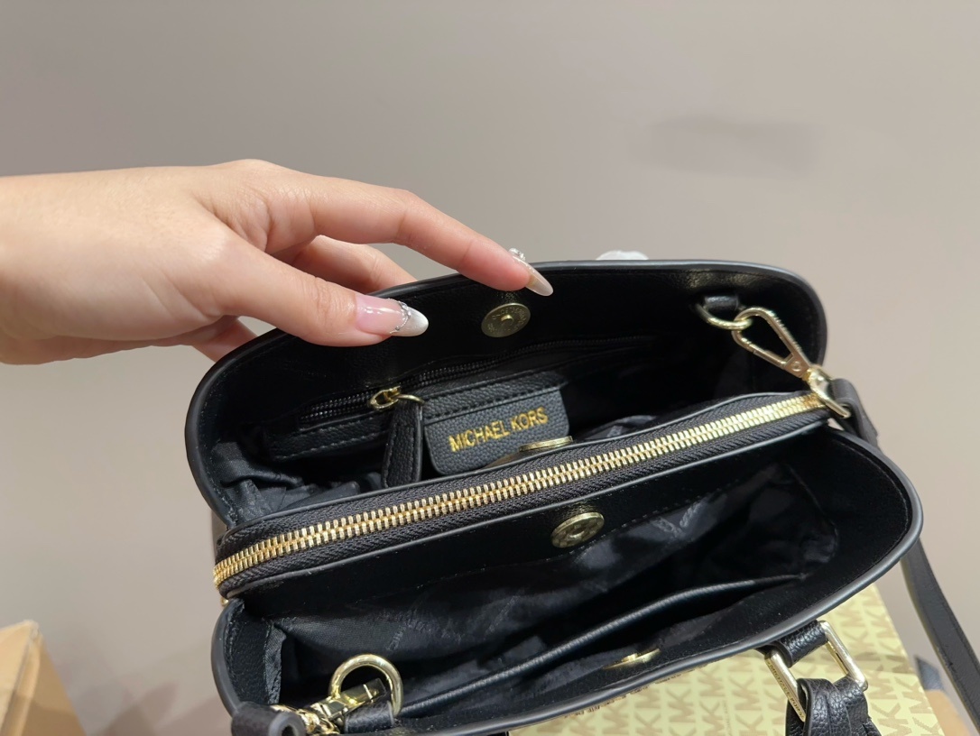 MICHAEL KORS MK 時髦拿捏住啦殺手包,以黑色高級皮革打造,質感細膩且耐用。簡約又不失奢華,金色金屬扣環及品牌標誌設計,增添時尚氛圍。包身設計精巧,內部空間寬敞,配有多個隔層,方便分類收納日常必需品。無論是工作、約會或旅行,這款MK 殺手包都能完美搭配各種場合,展現品味與風格。加上可調節肩帶設計,提供舒適背負感,無論手提或肩背都能輕鬆駕馭,實用與時尚兼具。這款包包是現代女性優雅與自信的最佳選擇。
