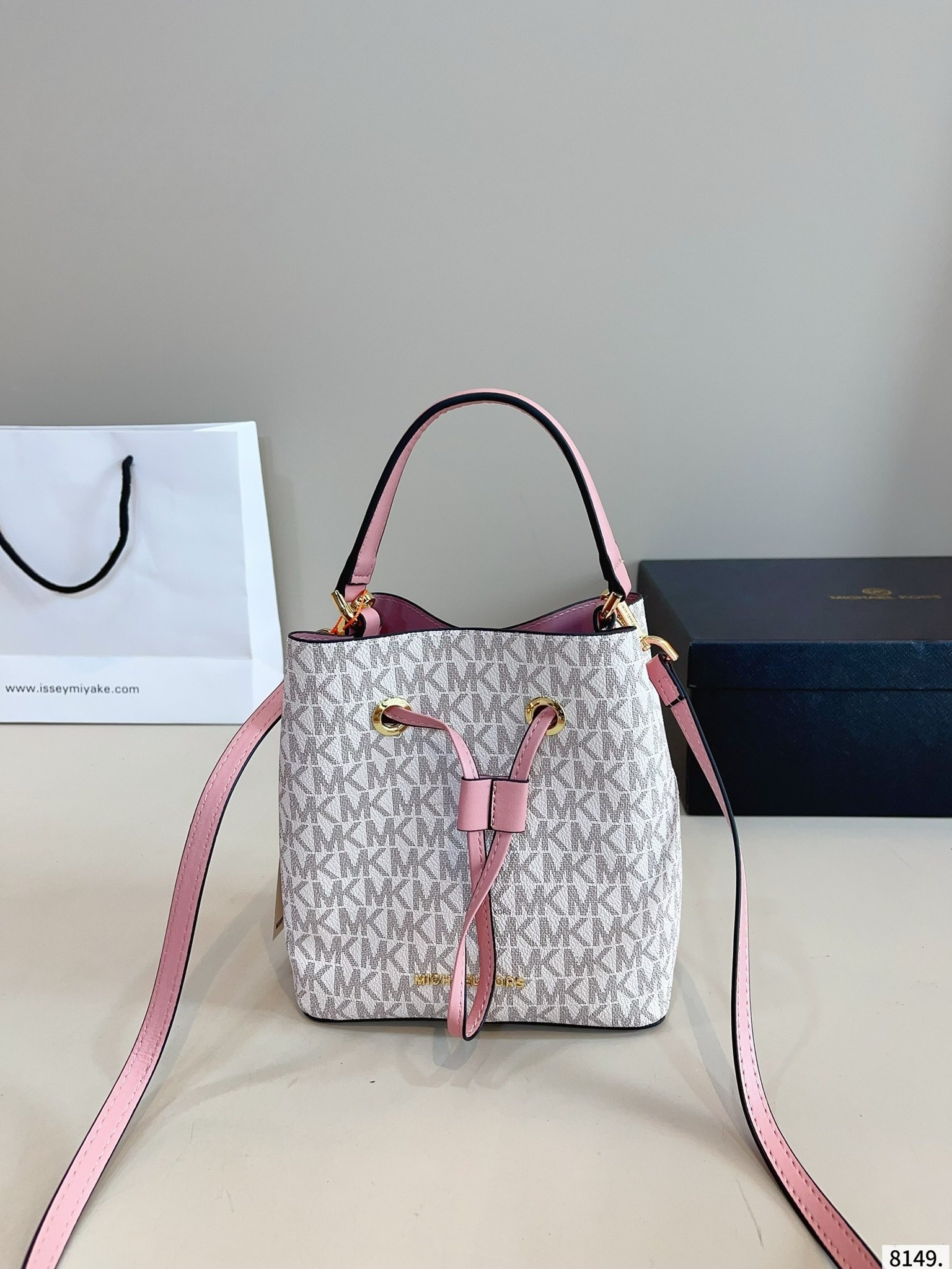 此款 Michael Kors Suri是經典迷你水桶包系列,採用浮雕金屬LOGO與防刮皮革/內裡皮革,束口開口,可拆卸提手和可調節肩帶,方便實用。這款mk 單肩包可放中短夾及手機等隨身小物,是款出遊無負擔包款,若偏好實用迷你包的你,不能錯過這款。