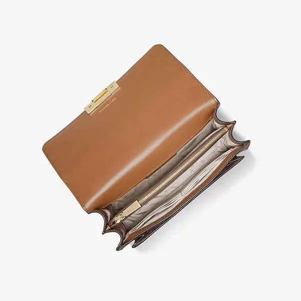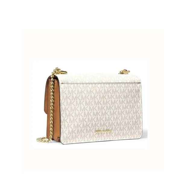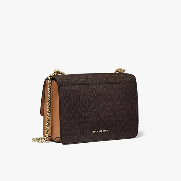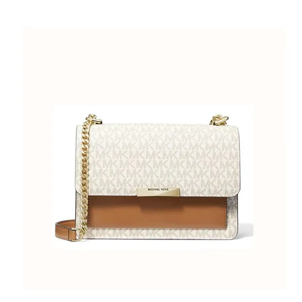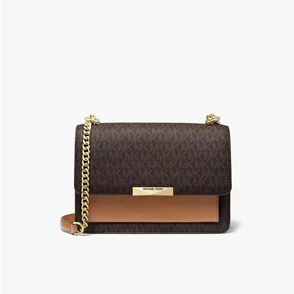 Michael Kors Jade 老花拼色單肩斜挎包,以經典的老花圖案搭配現代感十足的拼色設計,展現品牌的時尚魅力。此款MK 包包采用翻蓋設計,配有金屬鏈條肩帶,既可作為單肩包,也可斜挎使用,靈活且實用。包身結合了耐用的皮革材質和細緻的縫線工藝,質感十足。mk 單肩斜挎包內部空間設計合理,足以容納手機、錢包等日常物品,是日常出行或輕奢聚會的理想選擇。無論搭配休閒或正式服飾,都能輕鬆提升整體造型。
