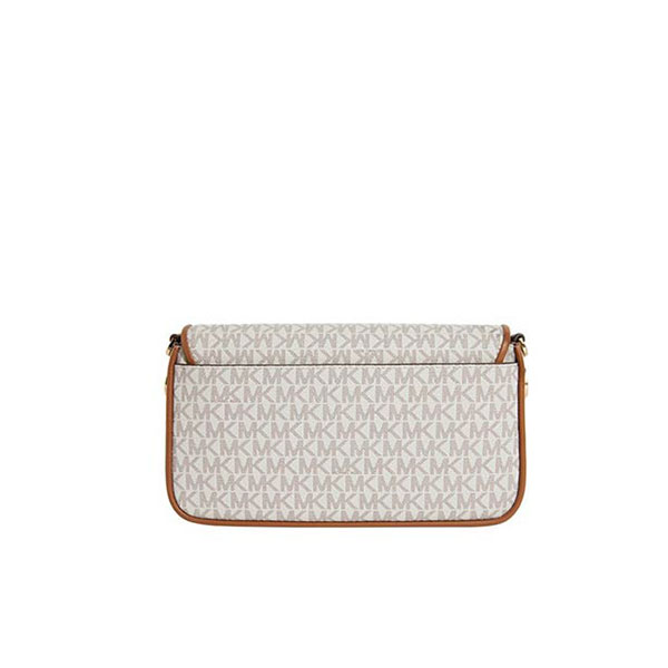該包採用翻蓋設計,包面以經典的老花圖案點綴,搭配金屬質感的 MK Logo,彰顯出品牌的高貴氣質。mk 斜背包材質選用優質皮革,質感細膩且耐用,手感舒適。包包底部設置有肆個保護腳釘,有效防止磨損,保護包包不受損傷。