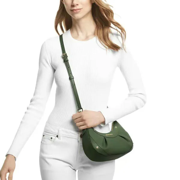 MICHAEL KORS MK Enzo 小號皮質腋下單肩包,兼具時尚與實用,提供四種經典顏色選擇,適合各種場合的搭配需求。包身採用優質皮革,觸感細膩,耐用且展現高級感。michael kors 斜肩包小巧的設計非常適合日常出街,無論是手提還是斜挎,都能輕鬆搭配,提升整體造型。內部空間雖小卻設計合理,可容納手機、錢包等必需品,實用性極高。