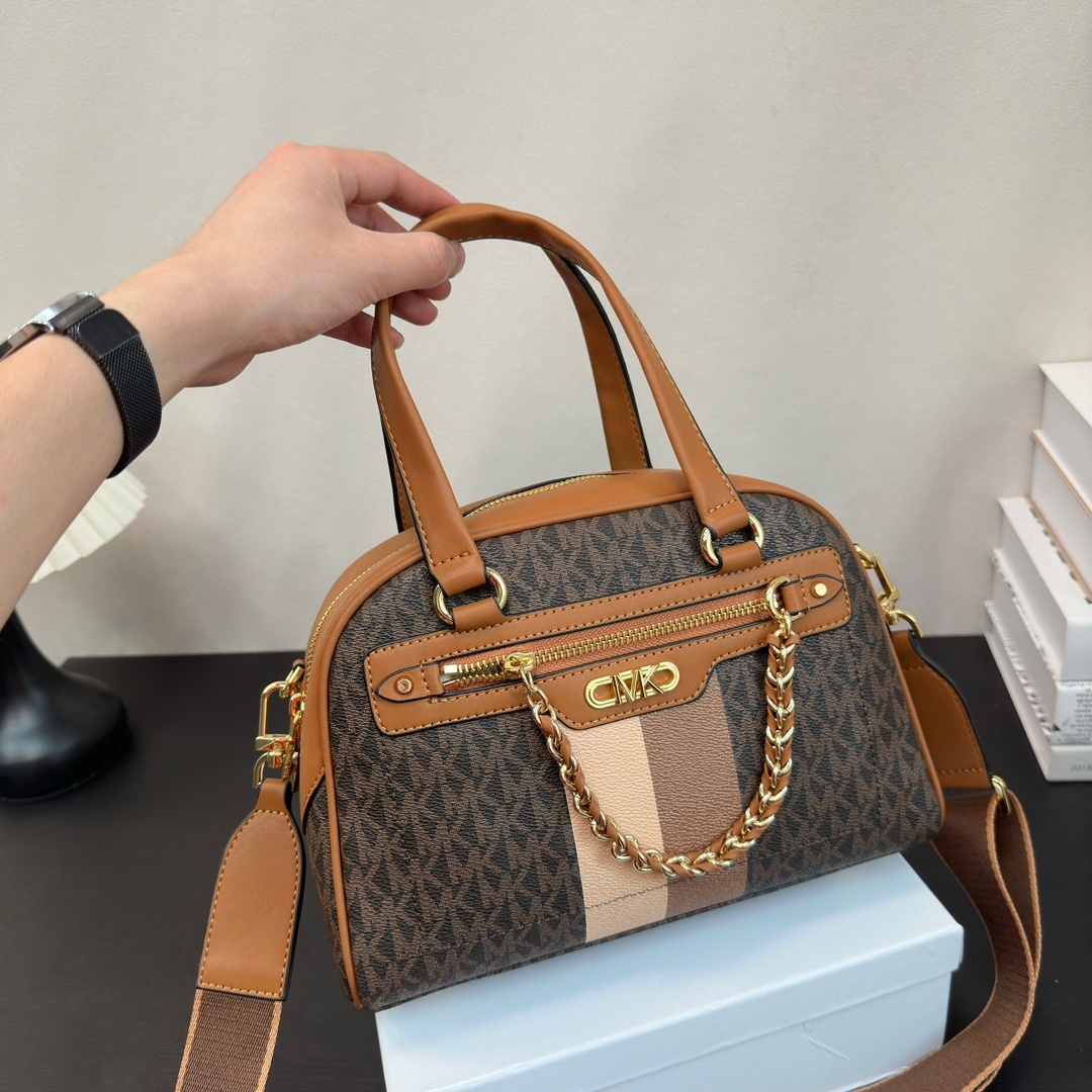 【經典老花色】Michael Kors MK 时髦氣質 新款保齡球包 手提包 斜挎包