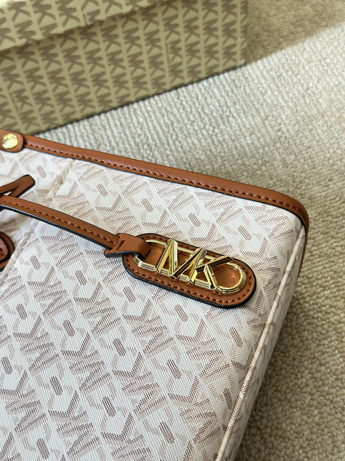 【MK經典老花色】Michael Kors MK 職場通勤 GIGI系列手袋斜背包绝对是你的理想之选!它融合了经典与潮流的设计元素,简约的线条搭配精致的品牌 logo,高级感十足,无论是通勤、逛街还是旅行,都能轻松匹配你的穿搭风格。精选高品质皮革,触感柔软细腻,五金配件坚固耐用,彰显奢华质感。内部隔层设计合理,手机、钱包、化妆品等随身物品都能分类存放,井井有条。可调节肩带能适应不同身高和使用习惯,背负舒适。在台湾,众多时尚达人都对它爱不释手,赶快入手,让 MK 斜背包为你的时尚造型加分!