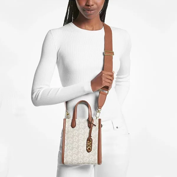 此款 MK Gigi 超小號老花斜挎包,小巧精緻。別具匠心地採用香草白色的全新 EMPIRE 鏈條老花材質打造間約挺括包型。工藝精美,上綴金屬 Logo 掛飾,細節處彰顯品牌質感。包內空間充裕,可以輕鬆容納您的口紅、紙巾等隨身小物,有顏又有料。單品設有純色手提柄和可調節長肩帶,可手提可斜挎,滿足不同場合需求。正如名字所代表的含義壹洋,此款MK 托特包超有腔調,氣場全開。日常通勤亦或時髦街拍凹造型,都可以完全 HOLD 住。