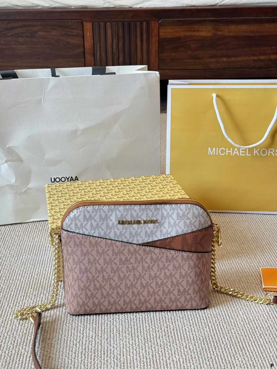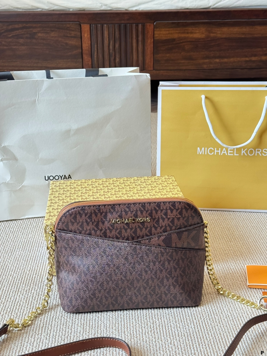 MICHAEL KORS MK JET Set 十字紋牛皮革貝殼包
