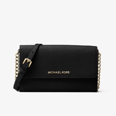 MICHAEL KORS JET SET TRAVEL 金字LOGO防刮皮革二合一掀蓋鏈帶包 黑色