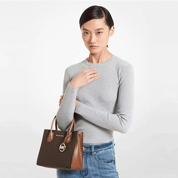 此款MK Mercer 中號老花拼色風琴包 經典單肩托特包,採用品牌標誌性 Logo 印花精製而成。搭配著品牌金屬MK Logo掛飾,彰顯時髦風範。精妙設計的內里可以輕鬆收納您的卡夾、手機和唇彩,在容納眾多細小雜物的同時為整體造型點睛。不妨將之作為優雅的手提包使用,或裝上隨附的肩帶,輕鬆斜挎出行。其设计简约而不失时尚感,棕色皮革展现出低调的奢华与百搭特性,适合各种场合与服饰搭配。材质上,选用优质皮革,手感柔软且耐用,确保了钱夹的使用寿命。此外,内部结构设计合理,多卡槽设计方便收纳各类卡片与现金,满足日常需求。Michael Kors的品牌影响力也为这款钱夹增添了附加值,是追求品质与时尚的消费者的理想选择。总之,【4色】Michael Kors Mercer 中號老花拼色風琴包 經典單肩托特包集美观、实用与品牌于一身,值得推荐。