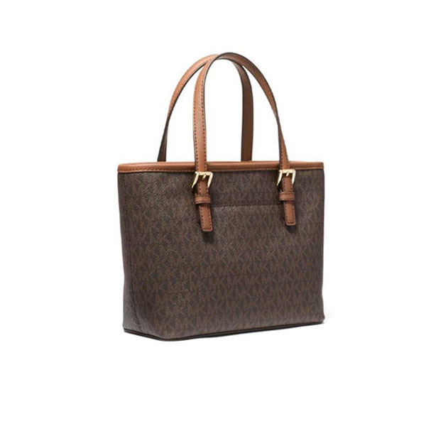 Jet Set女士托特包,是Michael Kors 經典款之一,採用頭層牛皮面料,硬挺有型且表面有細密的紋理,頂端拉鏈封口,包前一塊辨識度很高的MK logo銘牌,包身採用高質感的皮革與耐用材料,外觀簡約大方,內部空間合理,能容納日常必需品,實用又不失時尚感。無論是上班、出遊或約會,這款MK Jet Set 小號老花托特包都能讓您在各種場合中展現自信與品味。