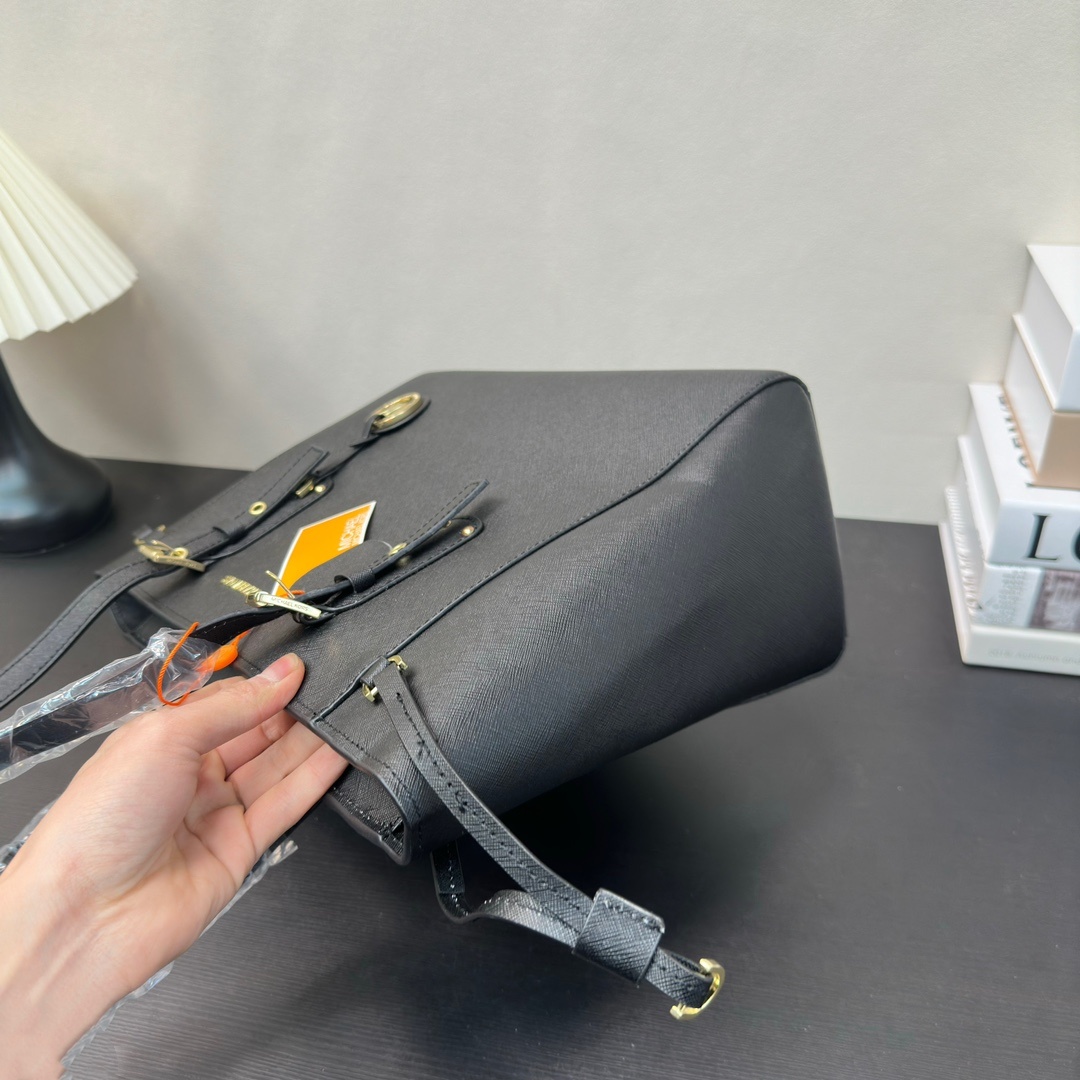 這款黑色Michael Kors MK超耐看購物袋,經典而時尚,采用優質耐用的材料,保證了長時間使用的耐用性與舒適感。包身簡潔大氣,黑色的設計搭配金色MK字母標志,展現出品牌獨特的高端感與時尚氣息。寬敞的內部空間設計合理,能夠輕松收納日常所需的物品,如錢包、手機、化妝品等,滿足購物或出門時的實用需求。加寬的手柄設計,便于手提或肩背,使用時更加舒適便捷。無論是日常出行還是作爲禮物,mk 包都是壹款極具品位和實用性的選擇,兼具功能與時尚感,適合各種場合使用。
