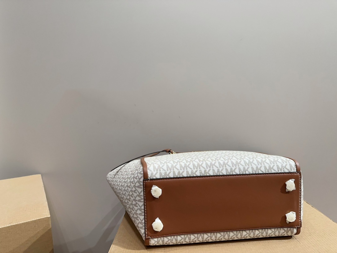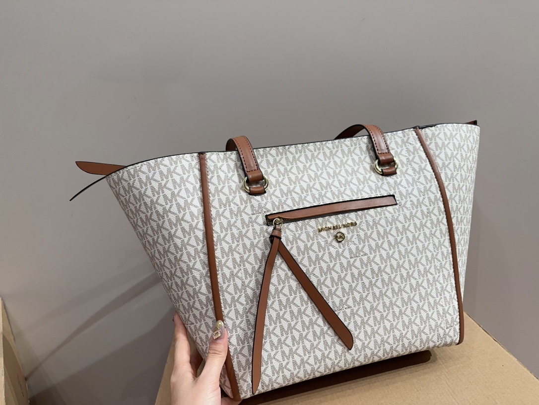 這款白色Michael Kors MK 隨性慵懶 Charlotte托特包以其輕松的設計和實用性成爲時尚與功能兼具的經典單品。采用優質皮革材質,手感柔軟且耐用,外觀簡潔大方。包身以清新的白色爲主色調,搭配金色MK字母標志,增添了幾分奢華感。寬敞的內部空間設計適合日常物品的收納,配有多個內袋,便于整理和存放小物件。舒適的肩帶讓背負更加輕松,適合日常外出、購物或者旅行使用。整體風格隨性慵懶,既顯得休閑又不失優雅,展現了mk 包壹貫的時尚品味。無論是搭配休閑裝還是職場穿搭,都能輕松融入,成爲百搭好選擇。