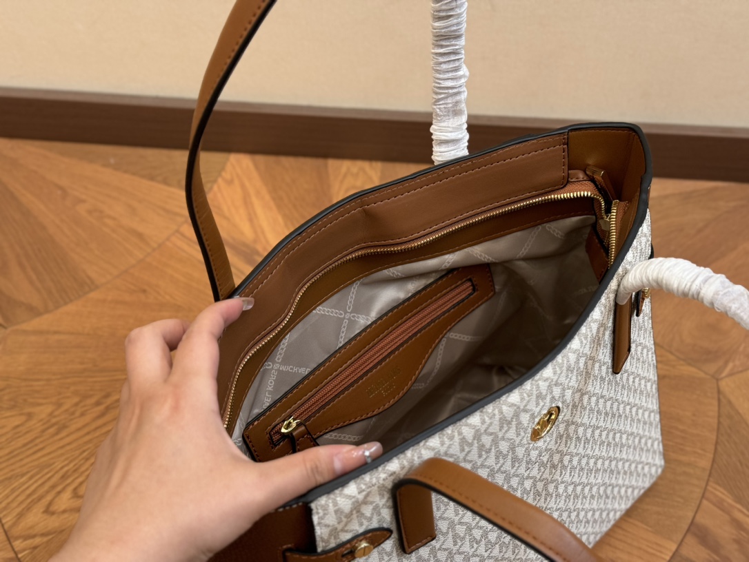Michael Kors MK 新品托特包,完美融合時尚與實用,是每位愛美女性必備的經典配件。這款托特包提供兩種經典顏色選擇,無論是低調的黑色還是優雅的米色,都能輕鬆搭配各種穿搭風格。大容量設計讓它不僅外觀時尚,還非常這合日常使用,無論是工作、購物還是旅行,都能輕鬆容納您的隨身物品。高質感皮革材質與精緻工藝,保證了耐用性與舒這感,讓您在任何場合都能展現獨特品味。這款MK 新品托特包,絕對是您的完美選擇,讓時尚與功能兼具,成為日常出門的最佳伴侶。