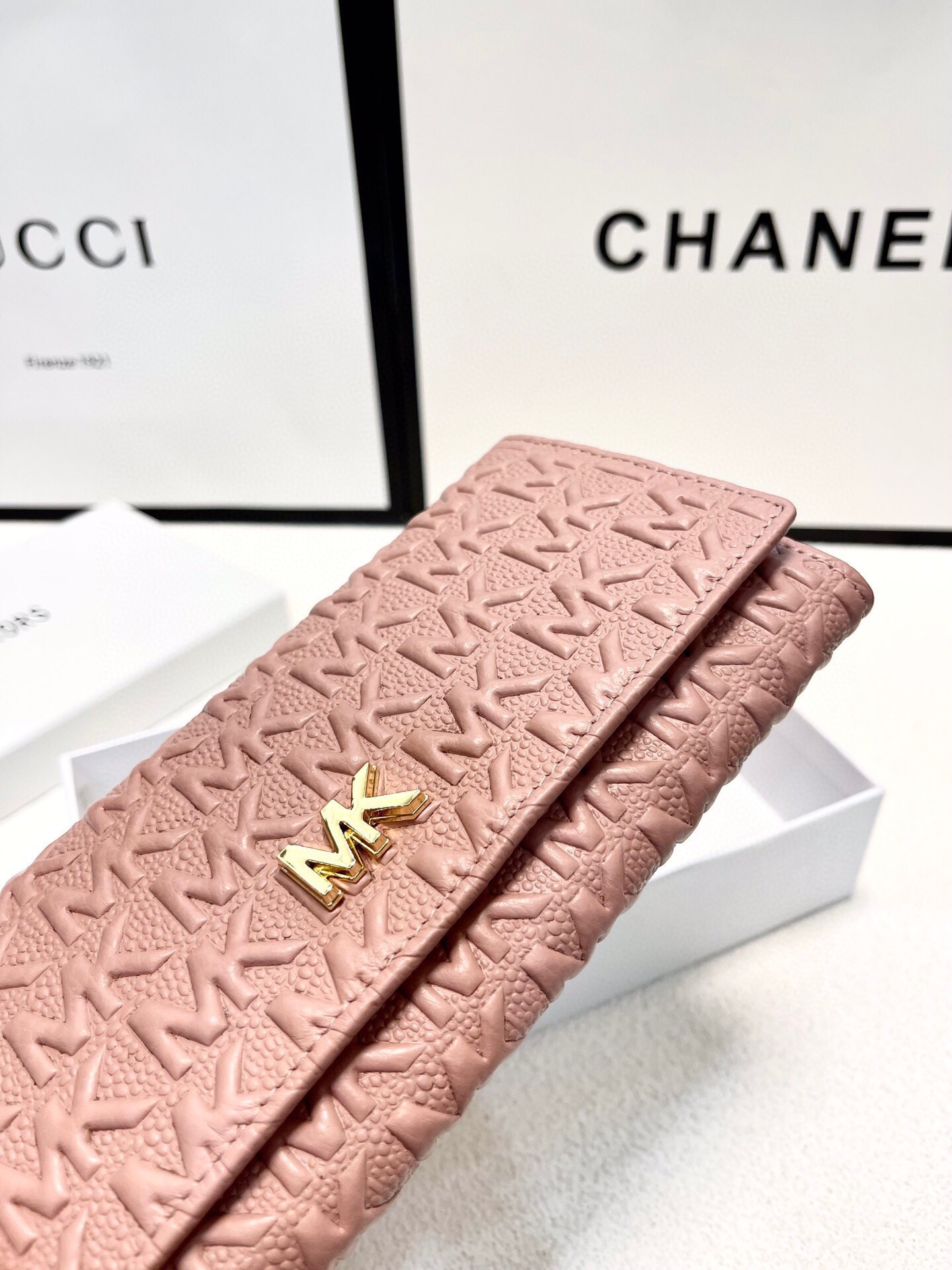 Michael Kors MK粉色長款錢包采用優質牛皮材質,外觀簡潔而時尚,展現出品牌的經典設計。錢包設計兼顧實用與美觀,內部擁有多個卡位和現金隔層,方便存放信用卡、身份證和鈔票。其粉色外觀帶有柔和的現代感,適合各種場合使用,不僅能夠滿足日常需求,還能彰顯個人品味。michael kors 長夾整體做工精致,配有金色MK標志,體現品牌的高端定位,適合追求時尚與品質的消費者。