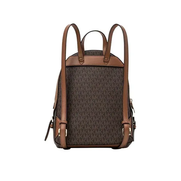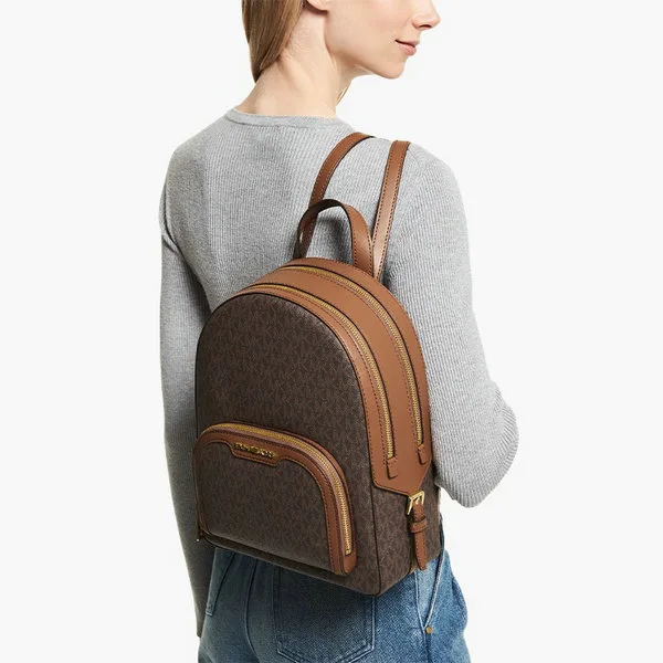 MICHAEL KOR JAYCEE 防刮皮革後背包,金屬LOGO+印花皮革材質,拉鍊開口安全收納,雙層拉鍊開口/內有1拉鍊袋與1厚舖棉收納袋、1貼層,包身外1拉鍊袋供收納,可後背也可側背或手提,內可放A4文件及15吋以內筆電、ipad等,無論休閒逛街,都能為您增添時尚感,是強力推薦的必備實用包款!其设计简约而不失时尚感,棕色皮革展现出低调的奢华与百搭特性,适合各种场合与服饰搭配。
