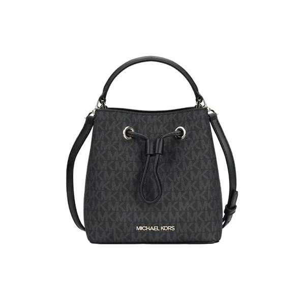 此款Michael Kors  Suri是經典迷你水桶包系列,採用浮雕金屬LOGO與防刮皮革/內裡皮革,束口開口,可拆卸提手和可調節肩帶,方便實用。mk 單肩包內可放中短夾及手機等隨身小物,是款出遊無負擔包款,若偏好實用mk 斜挎包的你,不能錯過這款。