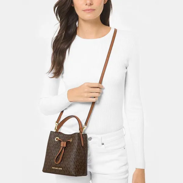 MICHAEL KORS MK Suri 迷你老花抽繩皮革水桶包,融合經典老花圖案與時尚設計,展現優雅與個性。此款mk 肩背包採用高品質皮革製作,結構堅固且具有耐用性,搭配精緻的金屬細節與抽繩設計,增添獨特的魅力。迷你水桶包的設計既小巧又實用,提供足夠的空間來收納手機、錢包及其他小物,適合日常外出或約會使用。michael kors 包包可調節的肩帶讓您可以單肩或斜挎,輕鬆搭配各種服飾,無論是休閒或正式場合都能彰顯時尚品味。這款MK Suri 水桶包是現代女性出行的理想選擇,簡約中帶有一絲奢華感,提升整體造型格調。
