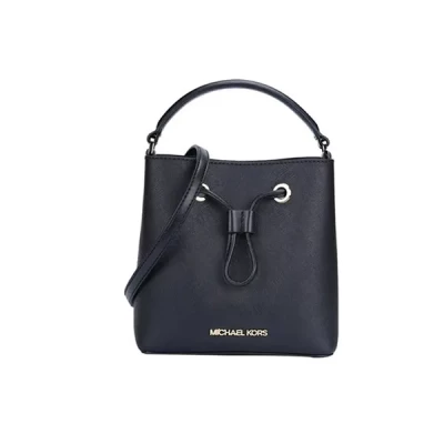 Michael Kors MK Suri 小號經典防刮皮革抽繩水桶包 單肩斜挎包 女款 黑色
